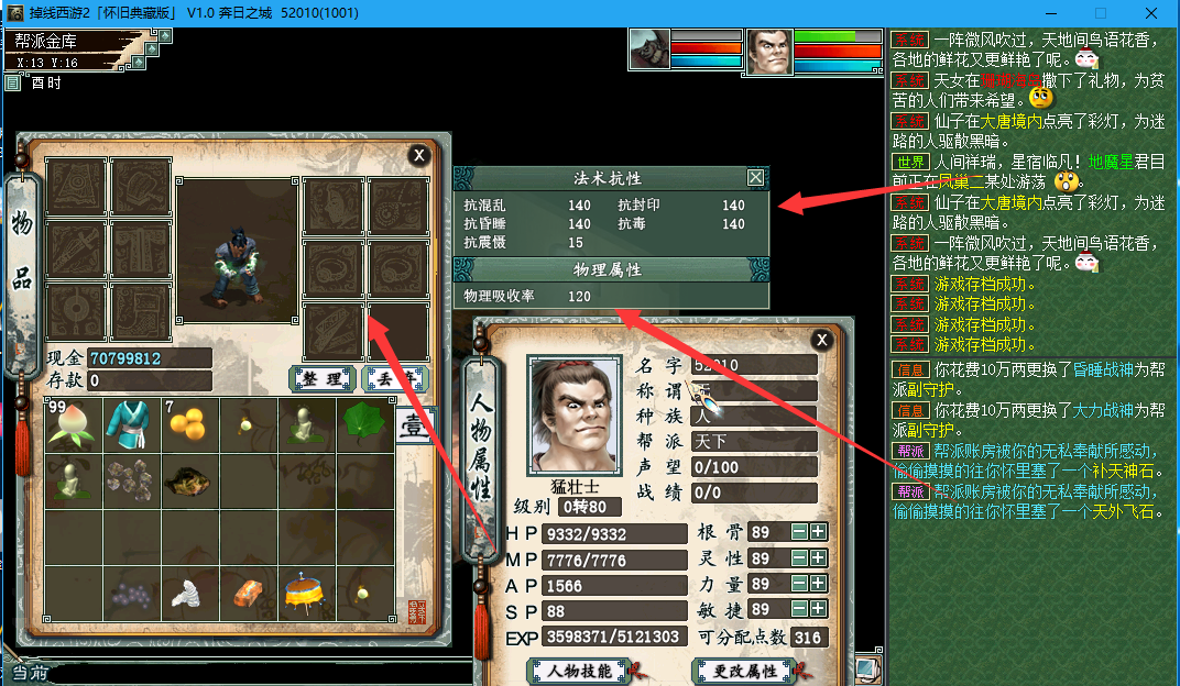 增加了人物天生抗性和帮派副守护抗性修改,勾选后取下/佩戴装备一次,(推荐用人族,直接四抗140)