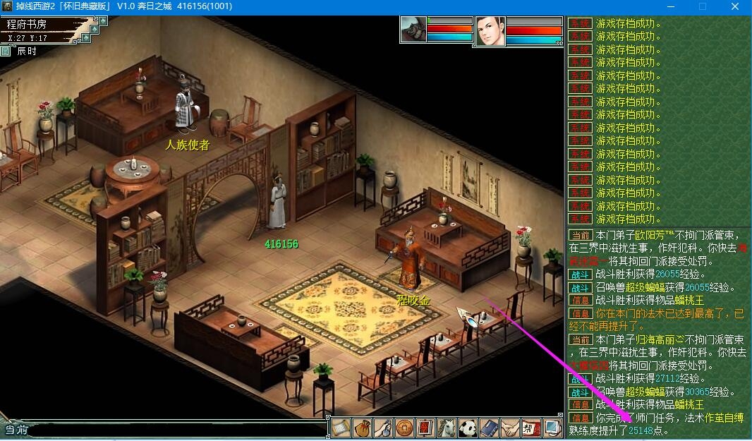 师门烧法单技能直接满法(增加25000左右熟练度);