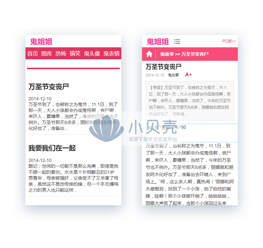 3、此套仿鬼姐姐源码,除了鬼故事之外,还有关于鬼的图片站。