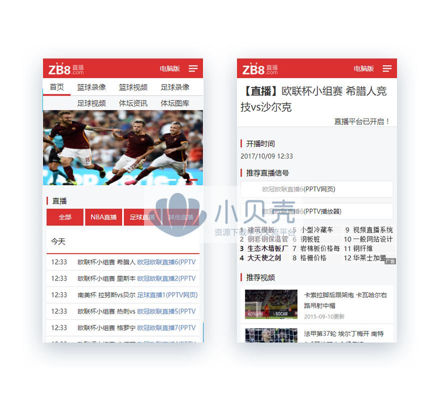 帝国CMS7.2仿直播8完美版源码 体育视频直播平台模板源码 带手机端