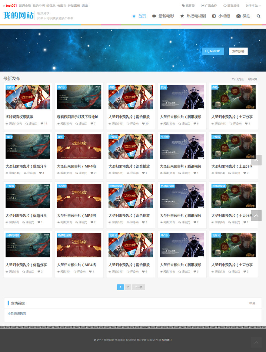 这个视频播放模板还是不错的,相对而言比较简洁,稍作修改,还可以变成图片站,或其他类型的网站。