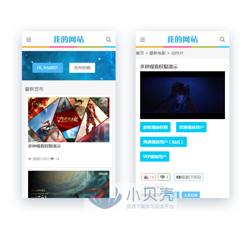 帝国CMS7.2响应式电影视频播放网站模板带会员中心,帝国CMS开发的视频播放网站,响应式网站模板。