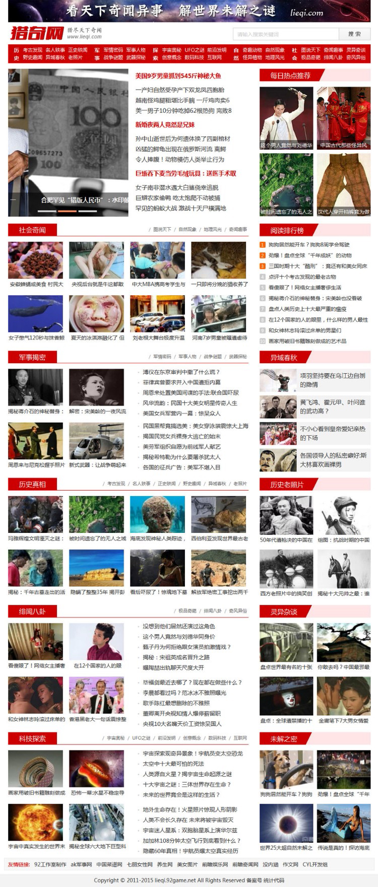 1、猎奇网,信息全部是采集的,海量采集自各大门户网站,然后通过修改标题的方式,发布在此网站上面。
