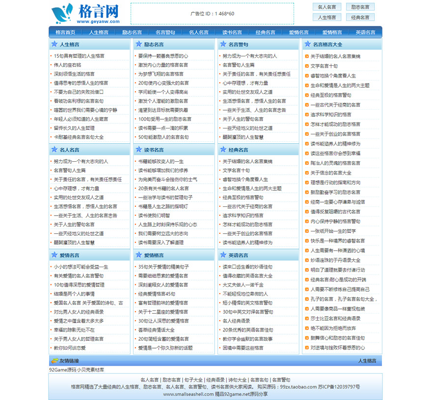 92Game源码仿【格言网】,基于帝国CMS7.2版本开发而成,带手机版,带火车头采集。