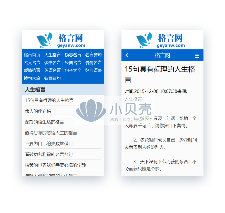 帝国CMS7.2仿格言网模板 文章文学网站模板源码+带手机版带采集