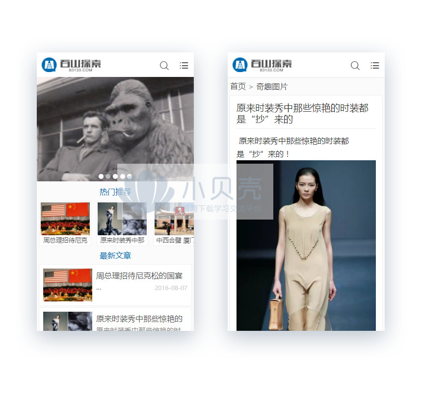 帝国CMS7.2仿百山搜索网站 文章资讯类分类信息网站模板源码+带手机版