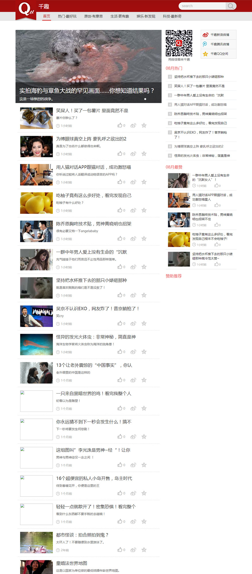 由92Game开发的仿【千趣网】新闻博客类网站模板,帝国CMS7.2内核。此博客类网站模板,灰常适合简单类的博客网站制作,比如生活趣味一类,或者一些个人心得分享。目前自媒体时代,用帝国CMS制作博客的最大优点是安全无忧,就算是帝国CMS7.0都很安全,帝国CMS7.2更不用说了,帝国CMS7.5就画蛇添足了点。