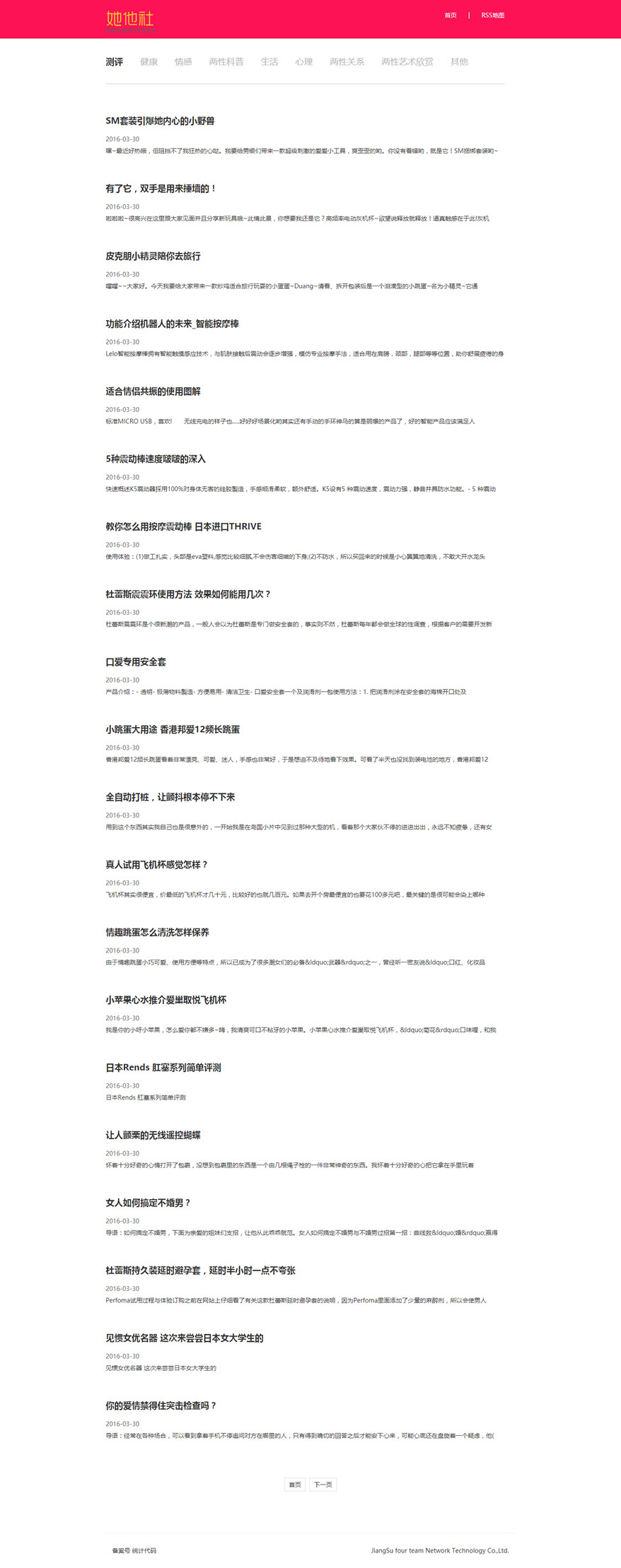 她他社是一个主打两性主题的博客,现在主打两性话题是一个获得流量不错的方式,因为图片类网站已经太多了,竞争越来越激烈。