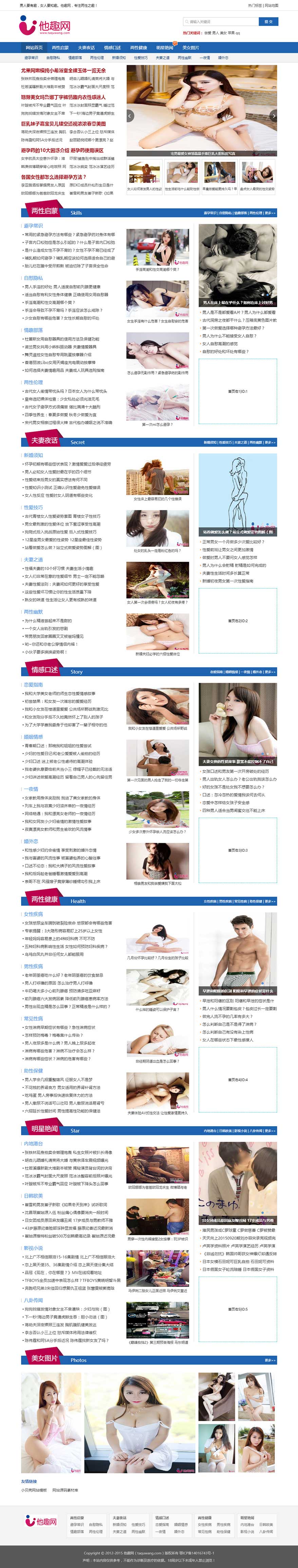 帝国CMS7.2两性健康类新闻网站模板仿【他趣网】92Game源码,带手机版,带火车头采集。