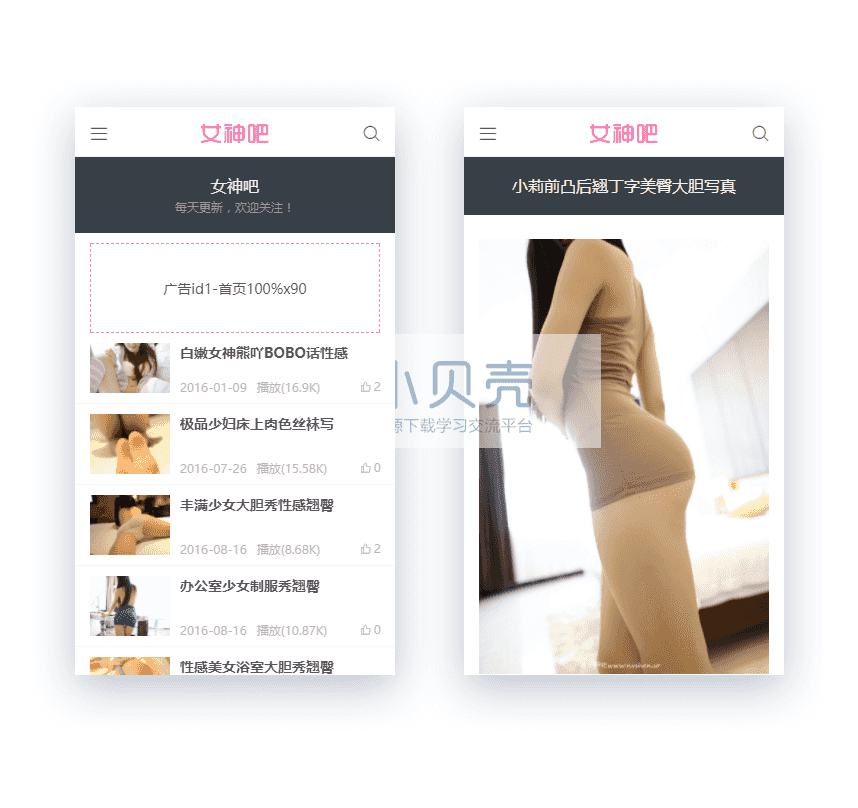 帝国CMS7.2 仿女神吧网站 响应式美女图片视频类网站模板源码+带手机端