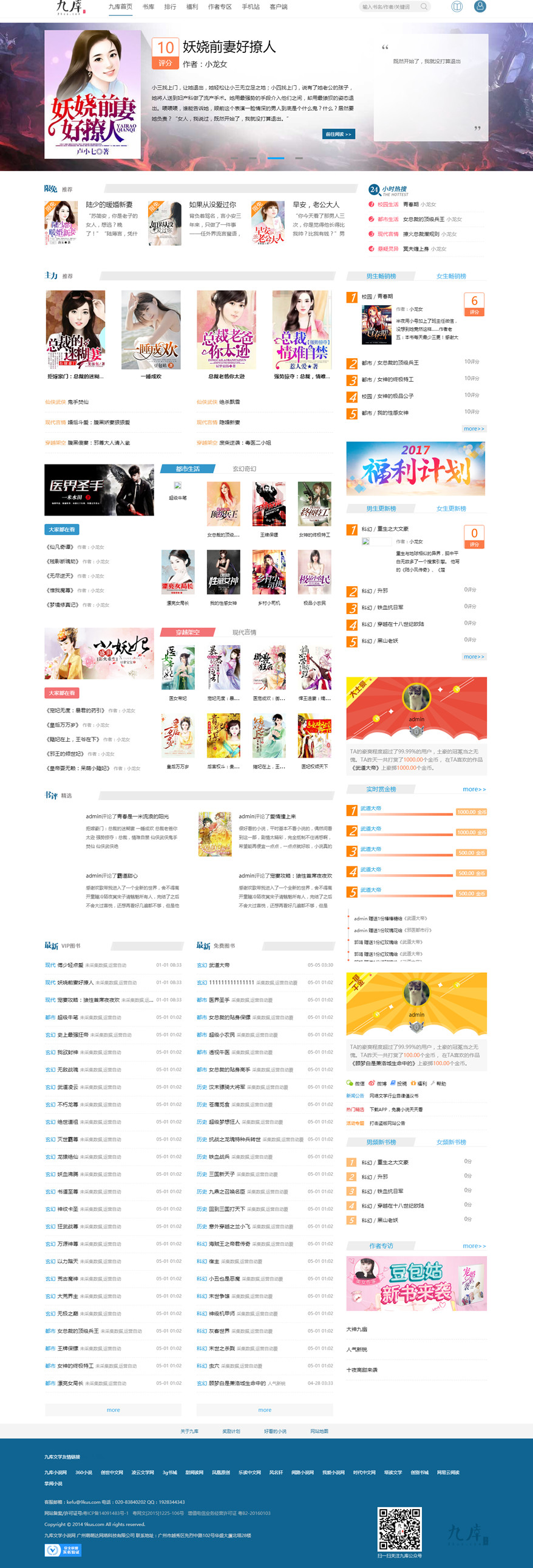 基于帝国CMS制作的完美小说站【九库文学】,页面十分精美,此套源码是2017年7月份最新版本,经过我们仔细测试,完美没有任何bug。