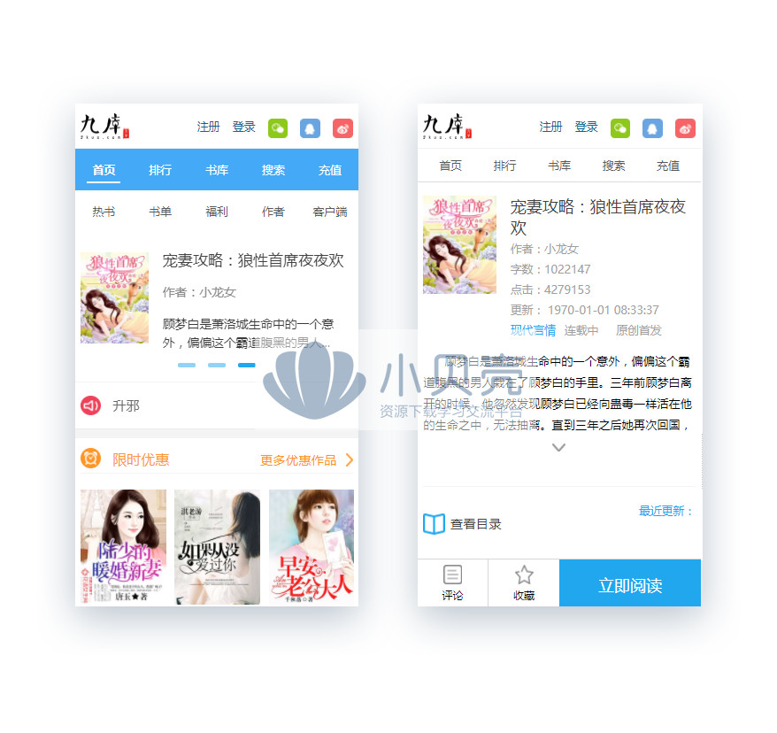 帝国CMS仿九库文学网站 多级会员投稿分成小说站网站源码带手机端
