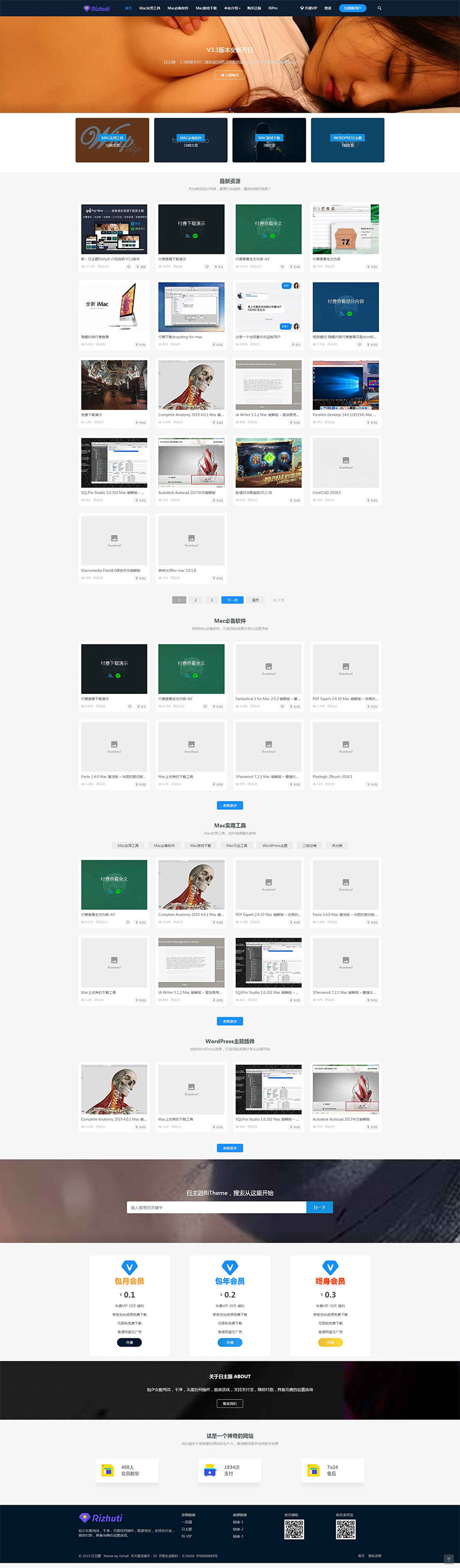 wordpress日主题rizhuti3.3最新版,破解授权,修复会员不可下载的问题,修复支付成功不回调的问题!