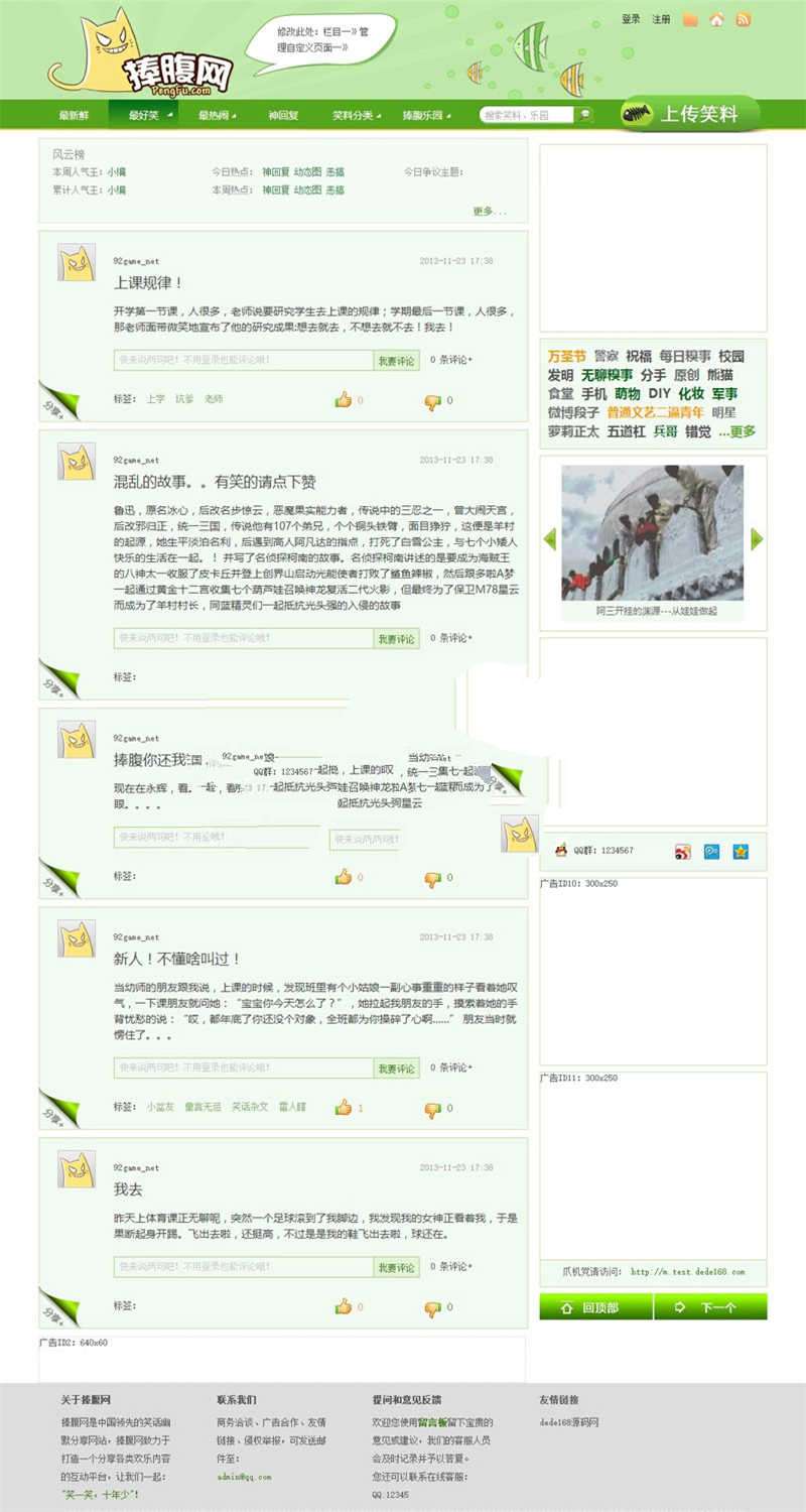 帝国cms7.0内核,编码语言为UTF8,运行环境要求php+MySQL,适合用来做笑话网站、内涵图片网站、邪恶漫画网站、搞笑gif视频网站等,是一份做工精细的帝国cms笑话网站模板主题。