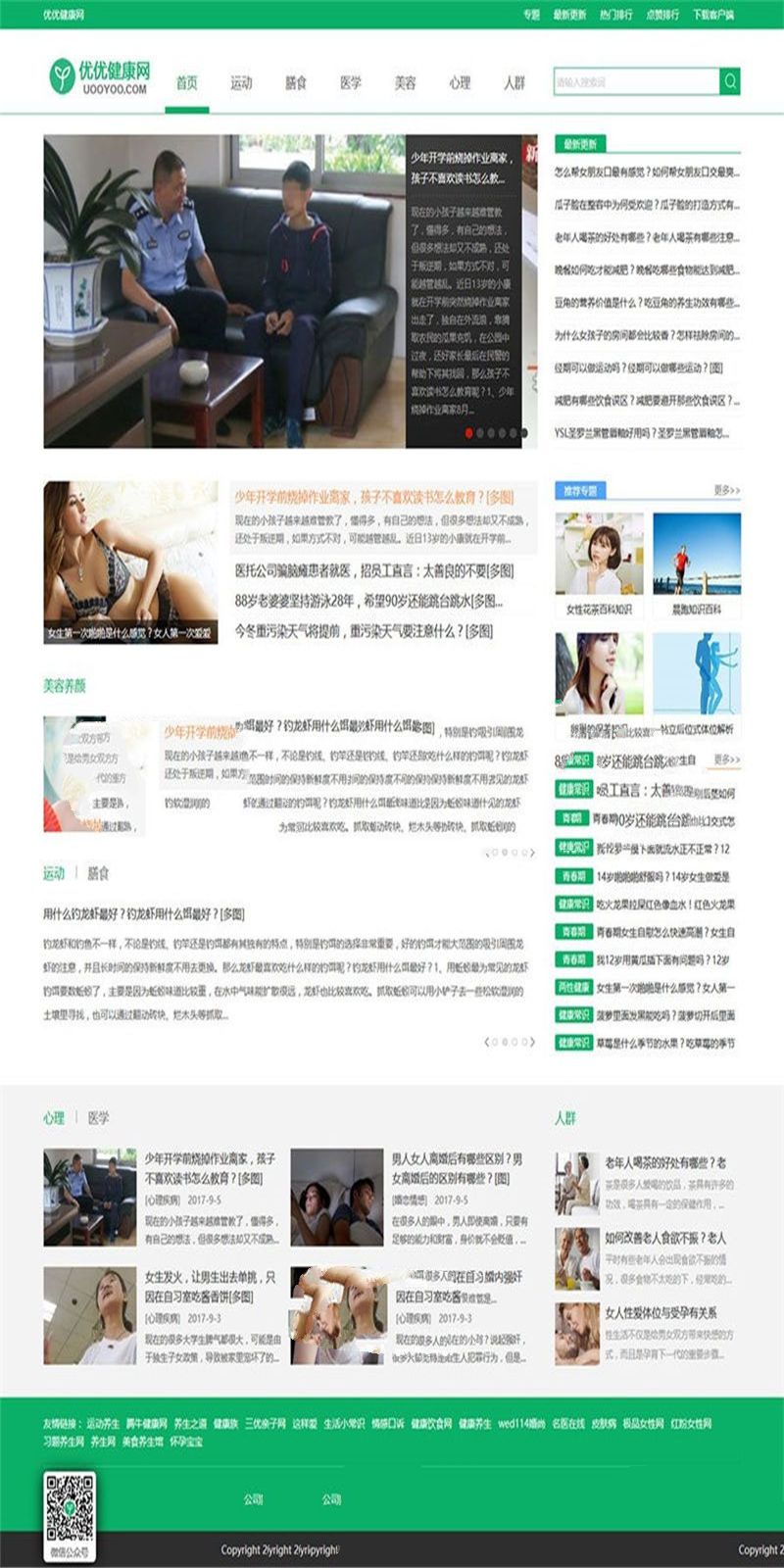 健康常识,美容食谱,人生感悟,营养科普,食材选购,老人健康,优优健康网提供最全面、最科学的健康知识,让你享受更轻松、更愉快的人生旅途。界面简洁整齐,带手机端与采集模板很精美适合做多种类型的网站,用户人群广收录好广告效果好。带采集。