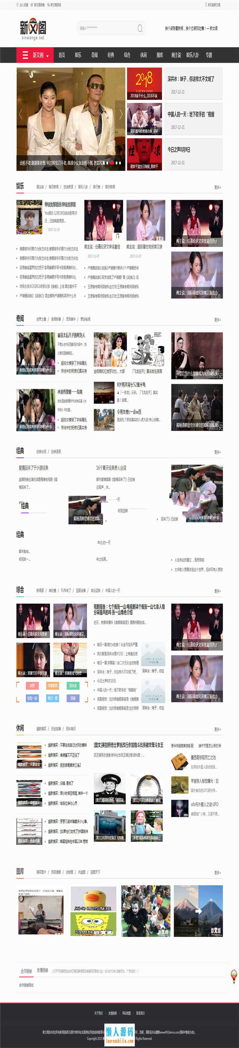 源码介绍:新文阁集腾讯、网易、搜狐、凤凰、新浪、等热门图片视频新闻于一体。利用本源码框架可用来做科技新闻,本地门户新闻,手机测评导购类的新闻站等。