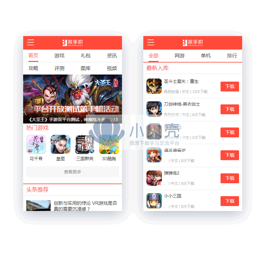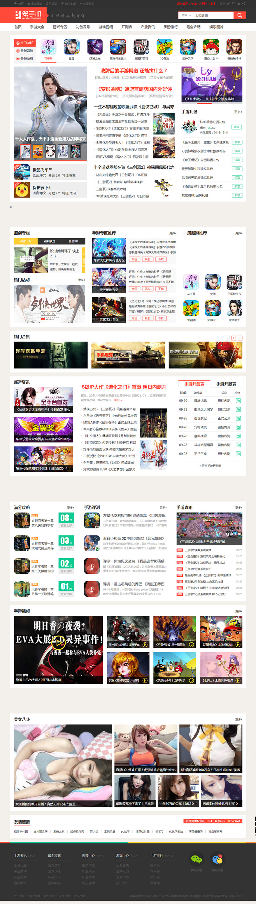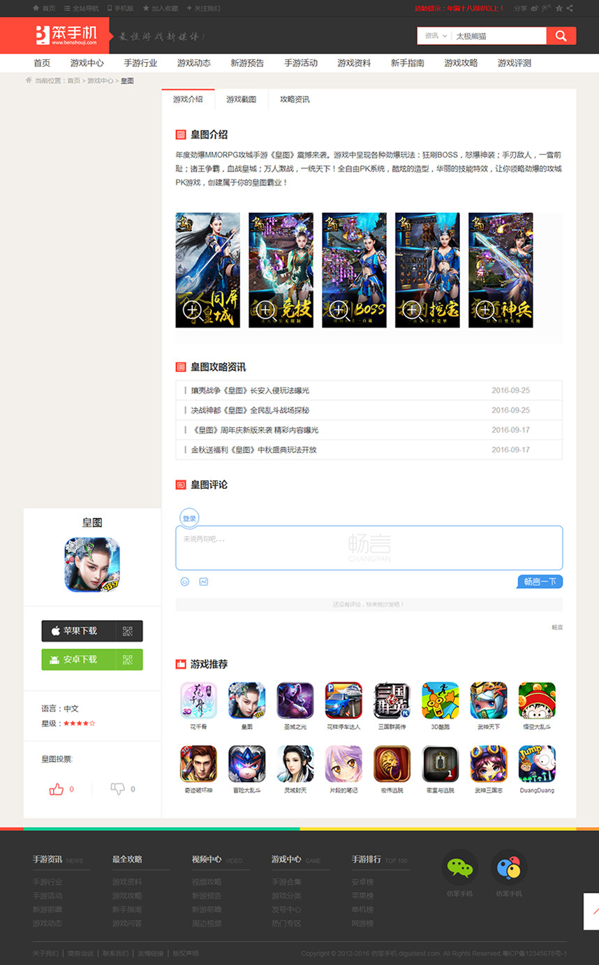 帝国CMS7.2手机游戏评测攻略下载资讯网站模板仿【笨手机】+手机端92Game源码,UTF8编码