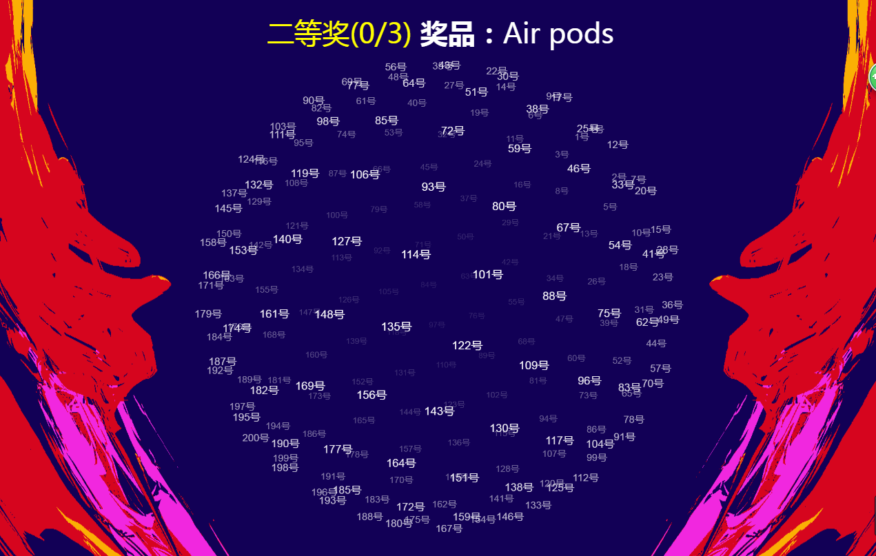 5. 如果中奖者没到场,可点击人名卡片删除,同时可再次抽取以作替补。