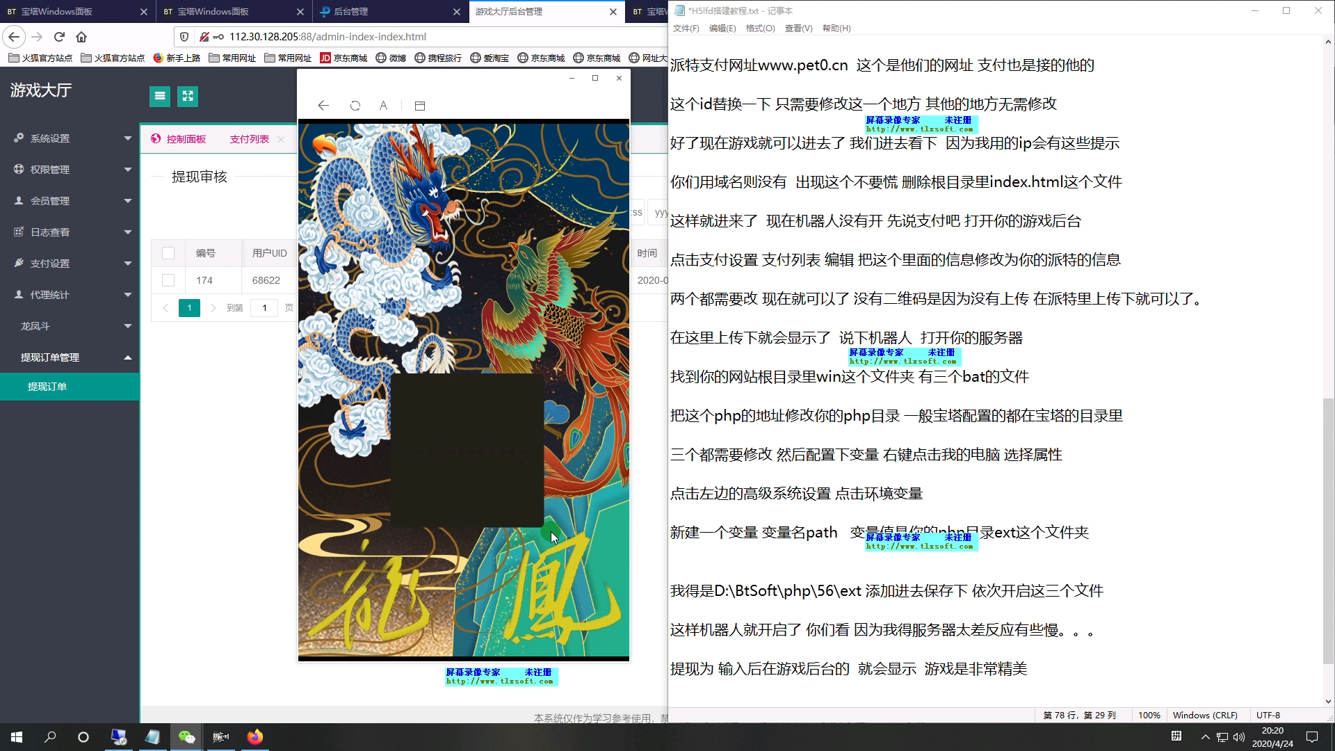 这个是H5龙凤配套的视频搭建教程,一步步讲解搭建,小白跟着教程也可以很快搭建出来,这个对接好了免公众号接口和免签支付,老样子,对接的派特的,因为这个是之前做的教程,现在派特的这个接口需要先开通,不然前台进不去,这点注意下。