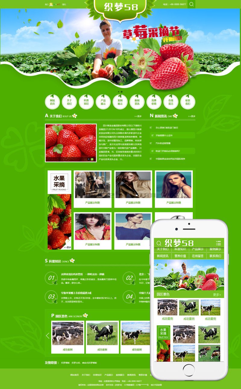 织梦绿色水果蔬菜农业种植类网站模板 带手机端