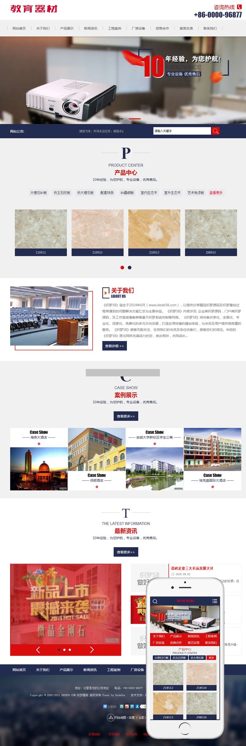 织梦dedecms蓝色风格办公教育器材行业网站模板源码 带手机移动端