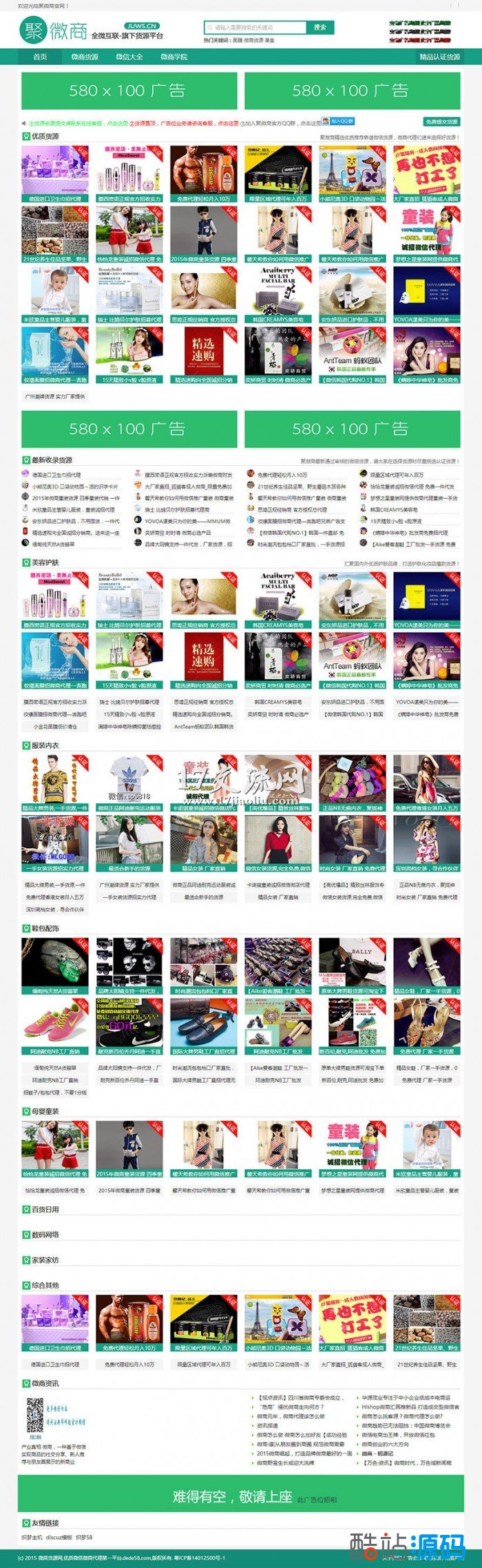 电脑版模板有首页、货源列表页 、普通货源内容页、认证货源内容页、(栏目是一个,但是发布货源的时候可以选择不同的模板,这样你可以收认证货源的钱。)微信大全列表页、微信大全内容页、文章列表页、文章内容页、搜索页、tag列表页。