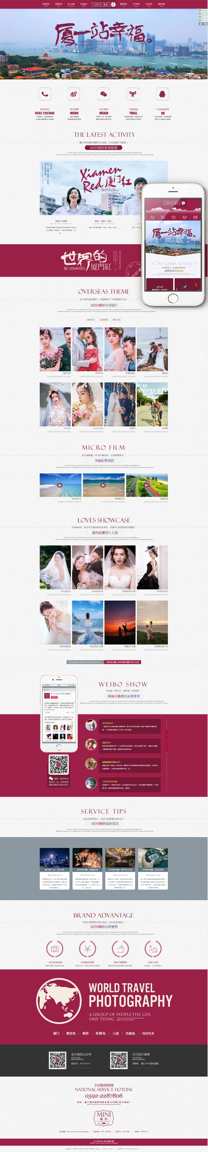 导航栏自动调用并自动识别是否带下拉,点击高亮显示,带在线客服,微博评价截图,各种弹窗特效,界面高端大气,适合高端婚纱摄影站使用!手机站自动同步PC站数据