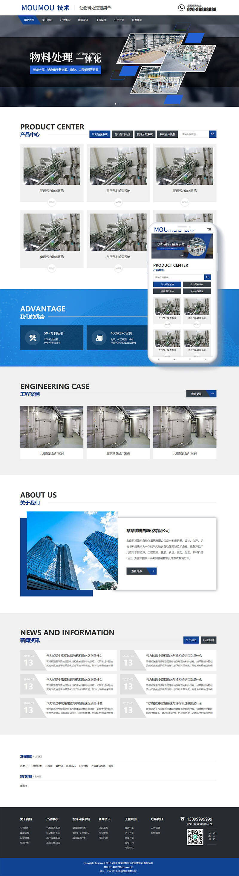 织梦最新内核开发的模板,该模板属于企业通用、物料、自动化、机械加工类企业使用,一款适用性很强的模板,基本可以适合各行业的企业网站!响应式自适应各种移动设备,同一个后台,数据即时同步,简单适用!