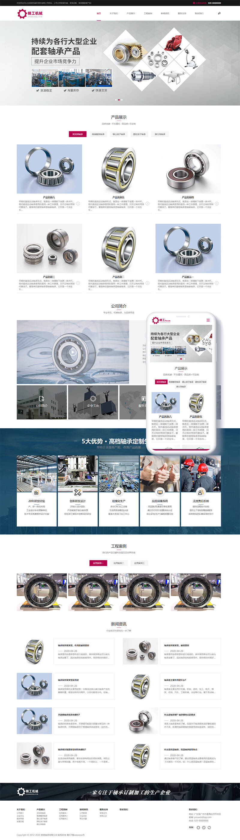 织梦最新内核开发的模板,该模板属于企业通用、机械制造、轴承生产类企业使用,一款适用性很强的模板,基本可以适合各行业的企业网站!响应式自适应各种移动设备,同一个后台,数据即时同步,简单适用!